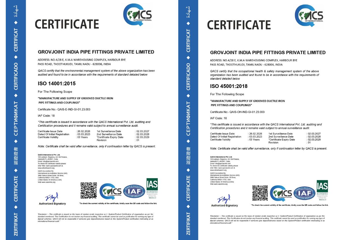 GROVJOINT INDIA PIPE FITTINGS is an ISO 9001 certified company delivering quality piping components to various industries.